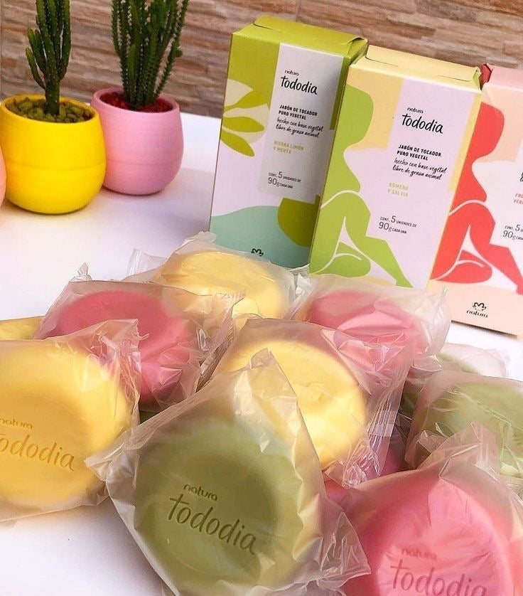 Ingredientes: Hechos con aceites 100% vegetales y alta glicerina para limpiar suavemente sin resecar, dejando la piel hidratada y sedosa con fragancias como cereza y avellana, o frutas rojas, utilizando ingredientes base como sodiuim, palmitate, Aqua, glicerina, zea mays atar y, aromas