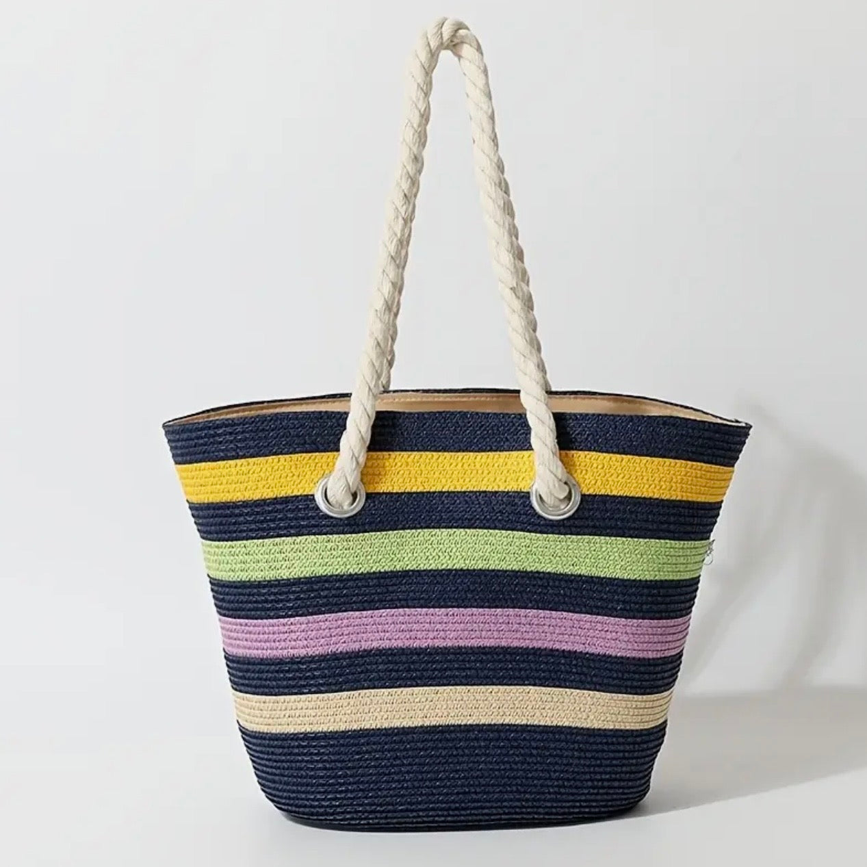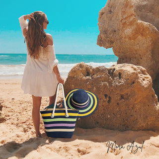 Estilo playero de paja trenzada y asas de cuerda tipo marinero, con forro interno y cremallera. Para guardar todos tus accesorios básicos para disfrutar del este verano.