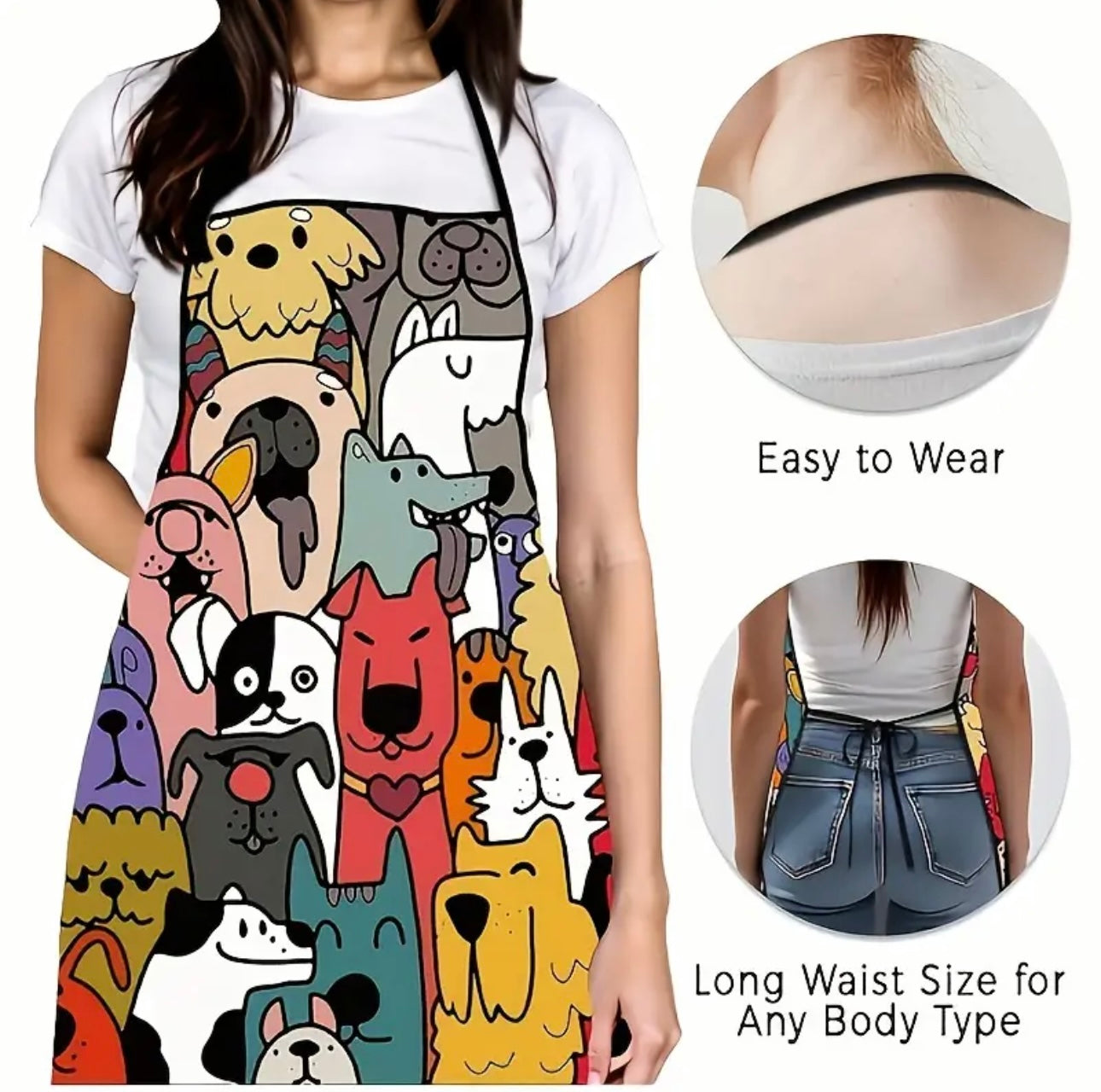 Mandil de perritos de carias razas coloridas, ideal para trabajos de manualidades, pintura y jardinería.